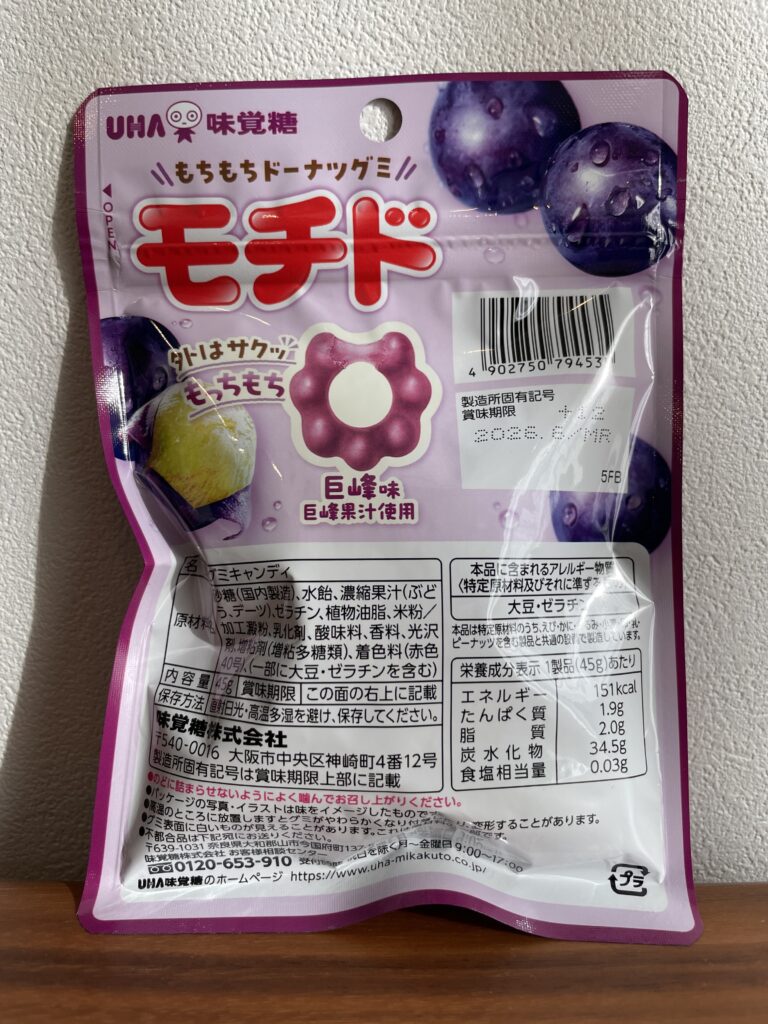 最後はUHA味覚糖から発売されている「モチド 巨峰味」です。