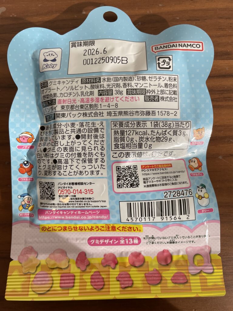 二つ目のおすすめグミは、バンダイキャンディから発売されている「星のカービィ」をモチーフにした「カービィグミ」です。