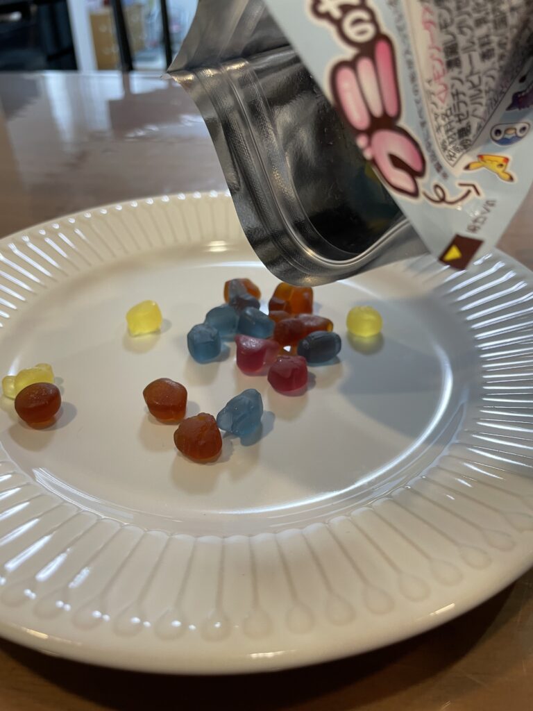 - 味:自分の好みの味があるグミをリピートしている。我が家の場合ソーダ系とぶどう系。