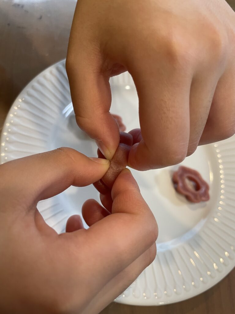 - また、1で一か所ちぎった後別のモチドグミにひっかけてリング状にして一気に食べるという食べ方も楽しいそうです。
