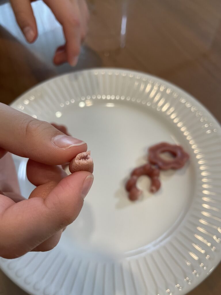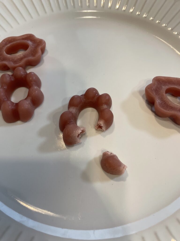 - グミをお皿に出したら、穴の開いたカービィグミとそれ以外に分けます。