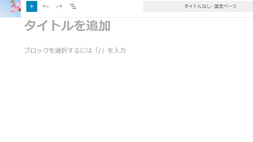 - 新規固定ページの編集画面がでたら、タイトルと文章を書いたのち公開して表示を確認します。